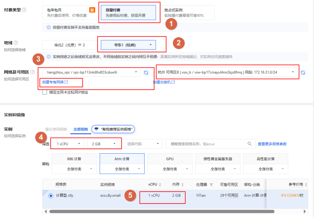 1.购买云服务器ECS 1.1 登录阿里云后,在控制台页面点击”云服务器ECS”,点击”创建实例” 1.2 选择付费模式及CPU和内存大小 1.3 选择镜像 1.4 选择存储大小和网络 1.5 选择安全组相关信息 分类: 阿里云 0 条评论 发表回复 取消回复您的邮箱地址不会被公开。 必填项已用 * 标注 名称 * 电子邮件 * 网站 在想些什么? 在此浏览器中保存我的显示名称、邮箱地址和网站地址,以便下次评论时使用。
